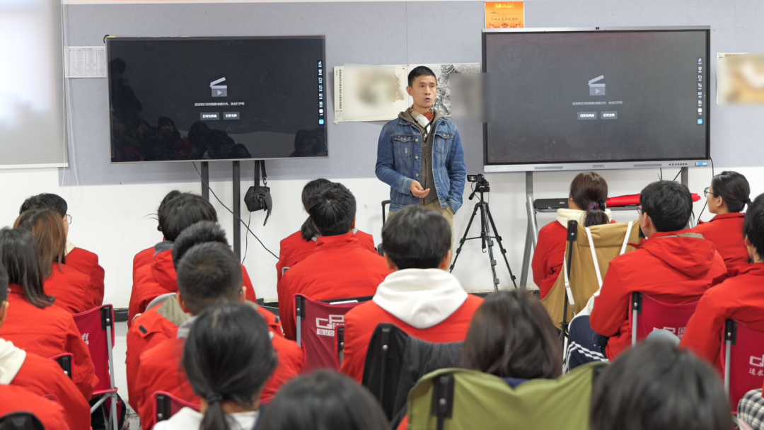 灯光渐暗,祝福视频缓缓播放,温暖而有力。屏幕上,一张张熟悉的笑脸出现——那是来自国培往届学子的真挚问候与鼓励,分享着备考时的坚持与收获,用亲身经历告诉学弟学妹们:每一份努力,都会在未来开花结果。